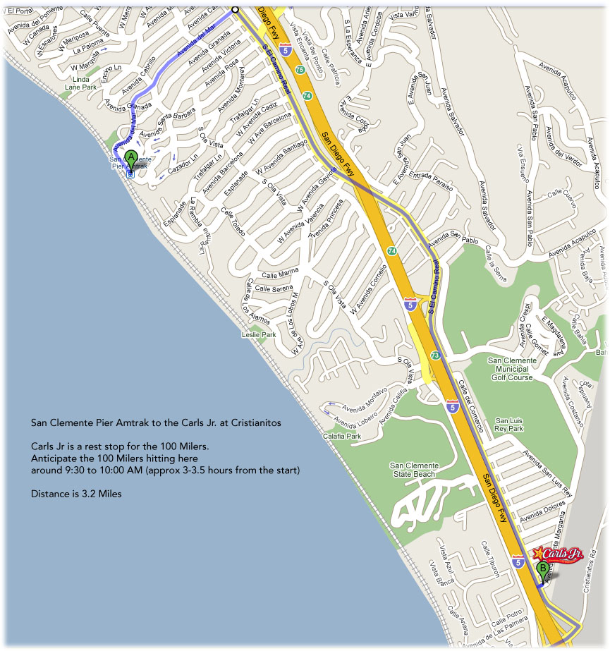 Start address: San Clemente Pier Amtrak Station